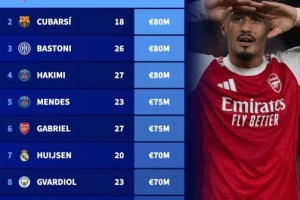 足壇后衛(wèi)身價(jià)排行:薩利巴9000萬歐居首,庫巴西等3人8000萬歐