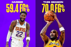 頓頓飽~!湖媒:艾頓本賽季投籃命中率70% 整個生涯59.4%