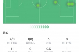 馬丁內(nèi)利本場數(shù)據(jù):4次射門0射正,錯(cuò)失1次機(jī)會(huì),獲評6.5分