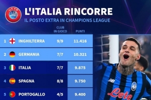 本賽季歐戰(zhàn)積分排名:英超居首,德甲、意甲、西甲二到四位
