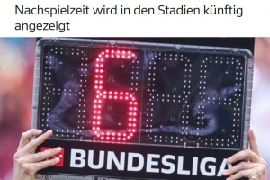 2026年起,德甲和德乙的球場大屏幕將顯示補(bǔ)時具體時間
