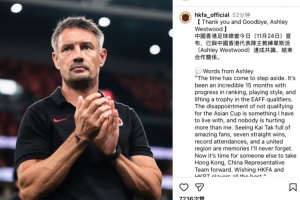 無緣亞洲杯,官方:中國香港隊(duì)主教練阿什利·韋斯特伍德下課