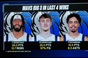近4勝獨行俠三人組數(shù)據(jù):濃眉26+13&弗拉格25分 小內(nèi)姆哈德16+8