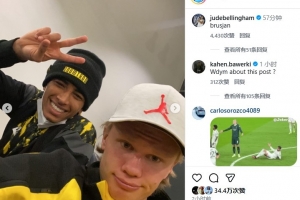 昔日多特隊(duì)友!哈蘭德曬和貝林的合照,后者評(píng)論:老鐵