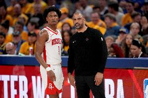 上半場(chǎng),阿門獨(dú)自砍下20分4板4助,但下半場(chǎng)他僅出手6次得7分。
