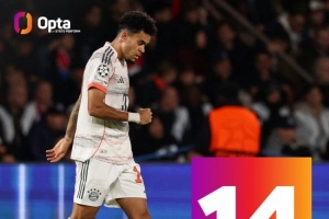 據(jù)Opta統(tǒng)計(jì),迪亞斯已在歐冠打進(jìn)14球,追平杰克遜-馬丁內(nèi)斯,并列成為歐冠歷史進(jìn)球最多的哥倫比亞球員。