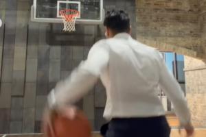 體育資訊10月26日訊 今日,ESPN名記Shams曬出自己在連續(xù)工作14個(gè)小時(shí)之后西裝革履運(yùn)球&投籃的視頻。