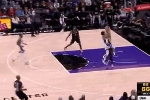 GIF-克利福德反擊撞倒波杰姆斯基裁判吹進攻犯規(guī);國王挑戰(zhàn)成功變防守犯規(guī)