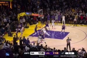 體育資訊11月7日訊 昨天一場NBA常規(guī)賽,湖人在主場以118-116擊敗馬刺。今天,NBA官方公布了最后兩分鐘裁判報告。有一次誤判。