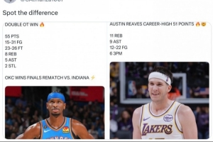 賽后美媒露天看臺(tái)曬出了里夫斯的數(shù)據(jù)但沒(méi)寫(xiě)上罰球數(shù)據(jù),而此前亞歷山大對(duì)步行者砍下55分的比賽數(shù)據(jù)卻有寫(xiě)上罰球,雷霆隨隊(duì)記者Clemente Almanza對(duì)此寫(xiě)道:“發(fā)現(xiàn)了區(qū)別?!?/p>