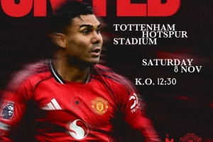 曼聯(lián)官方社媒發(fā)布賽前海報,卡塞米羅單人出鏡。曼聯(lián)5勝2平3負(fù)積17分,排在英超第8位,熱刺同積17分排在第6位。