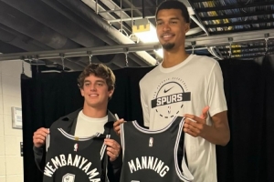 本場(chǎng)比賽,德克薩斯大學(xué)橄欖球隊(duì)球員阿奇·曼寧等人現(xiàn)場(chǎng)觀看了本場(chǎng)比賽,并受到了文班亞馬及??怂沟慕哟P侨⑵妗ぢ鼘庍€和文班互換了球衣。