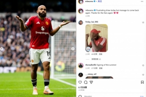 他也在賽后通過社媒曬出自己的攤手慶祝照,并配文:“今天的平局令人沮喪,但我們還是設(shè)法扳平了比分,再次感謝球迷們????”。