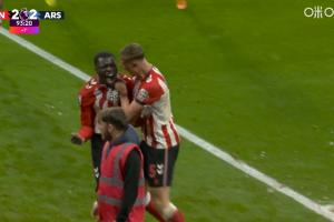 體育資訊11月09日訊 英超第11輪,阿森納客戰(zhàn)桑德蘭。補時第94分鐘,布羅比側勾破門,拉亞出擊未撲到,桑德蘭2-2阿森納!