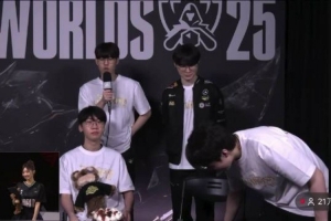 體育資訊11月9日訊 采訪只準備了兩把椅子!Keria中途離開,F(xiàn)aker終于能坐下了。