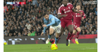 體育資訊11月10日訊 曼城vs利物浦第15分鐘,B席踉蹌前插追球,一腳鏟翻范戴克。