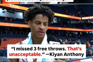 體育資訊11月10日訊 在昨天的NCAA常規(guī)賽,雪城大學(xué)以83-43狂勝德拉瓦州立大學(xué),取得開(kāi)季兩連勝??仿 ぐ矕|尼之子基揚(yáng)·安東尼迎來(lái)大學(xué)生涯第一次首發(fā),他11投8中,三分4中2、罰球4中1,砍下19分3籃板4助攻1搶斷,沒(méi)有失誤。