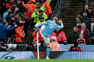 體育資訊11月10日訊 英超第11輪比賽,曼城在伊蒂哈德球場(chǎng)迎戰(zhàn)利物浦。本場(chǎng)比賽,主隊(duì)前鋒哈蘭德盡管在上半場(chǎng)錯(cuò)失1粒點(diǎn)球,但他之后頭槌破門(mén)為球隊(duì)首開(kāi)紀(jì)錄。