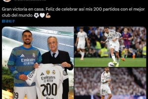 他也在賽后通過社媒曬出比賽照并配文:“在主場取得重要勝利!很高興能為世界最佳俱樂部出戰(zhàn)第200場比賽?!?/p>