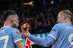 據(jù)ESPN報道,多庫在比賽中破門之后,哈蘭德和福登吃蘋果慶祝進球。