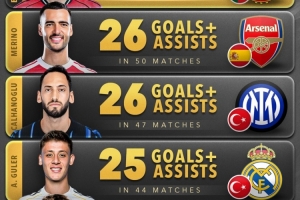 恰爾汗奧盧——47場(chǎng)26球