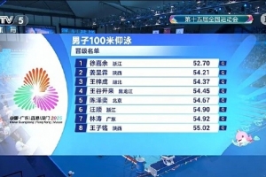 體育資訊11月11日訊全運會男子100米仰泳半決賽,徐嘉余第一、汪順第六晉級決賽。