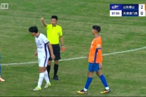 中超第29輪,山東泰山vs天津津門虎,比賽第87分鐘,陳哲宣不滿判罰連續(xù)向主裁李海新輸出,主裁先是黃牌警告,隨后直接掏出紅牌罰下陳哲宣。