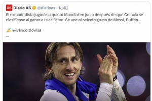 40歲克羅地亞中場莫德里奇將迎來自己的第5屆世界杯,西班牙媒體《阿斯報(bào)》主編、皇馬球迷龍賽羅轉(zhuǎn)發(fā)相關(guān)新聞,配文:“永恒的莫德里奇,偉大的盧卡(莫德里奇)!”