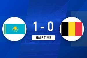 上半場比賽結(jié)束,哈薩克斯坦1-0比利時。