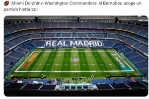 皇馬官方社媒曬出伯納烏球場(chǎng)準(zhǔn)備就緒的照片,配文:“邁阿密海豚vs華盛頓指揮官,伯納烏球場(chǎng)將迎來一場(chǎng)歷史性的比賽。”