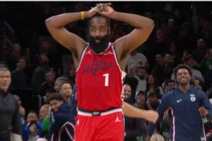 比賽最后19秒,哈登依靠3罰+2記三分個(gè)人連得9分將分差迫近到1分。