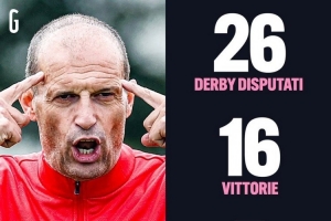 據(jù)米蘭體育報數(shù)據(jù)統(tǒng)計,米蘭主帥阿萊格里此前共26次帶隊出戰(zhàn)米蘭德比(米蘭)以及都靈德比(尤文),戰(zhàn)績?yōu)?6勝5平5負。