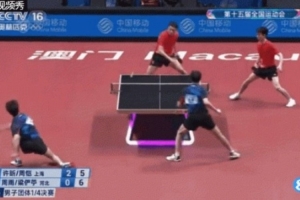 許昕搭檔周愷出戰(zhàn)雙打,面對(duì)對(duì)手大角度回球,許昕極限拉伸后轉(zhuǎn)身完成背后擊球,小球精準(zhǔn)落臺(tái)。