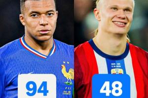哈蘭德與姆巴佩的國家隊進球數(shù)一樣,但姆巴佩所用場次為94場,哈蘭德場次僅為姆巴佩的一半多一點。