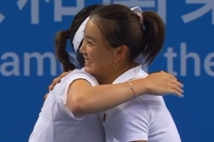 網(wǎng)球女雙半決賽,廣東隊王欣瑜/袁悅對陣四川隊湯千慧/郭涵煜,王欣瑜/袁悅逆轉(zhuǎn)對手晉級決賽,將對陣另一對四川組合王雅繁/蔣欣玗。