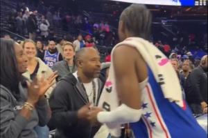 GIF-馬克西一路摟著哈登,后者穿越人海擁抱馬克西母親