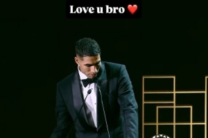 他的好友姆巴佩也通過社媒曬出阿什拉夫的獲獎?wù)?,并配文:“愛你,兄弟!非洲之王。干得漂亮,我的兄?..這份榮譽實至名歸?!?/p>