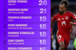 體育資訊11月20日訊 本屆世歐預(yù)小組賽已經(jīng)告一段落,squakwa也統(tǒng)計(jì)了本屆賽事成功傳中情況,威爾士邊鋒索爾巴·托馬斯領(lǐng)跑。