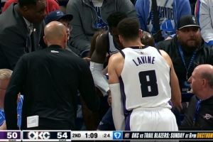 GIF-德羅贊戰(zhàn)斧劈扣扣飛,施羅德救球踢翻電腦,飛到觀眾席