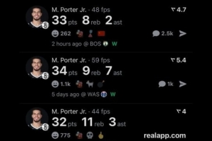 數(shù)據(jù)美媒Real Sports曬出小波特本賽季30+場次(5次)數(shù)據(jù),并寫道:“進(jìn)攻頭號選擇的小波特?!?/p>
