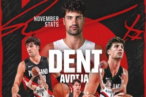 11月份,阿夫迪亞場(chǎng)均27.9分7.1籃板6.6助攻。