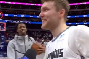 賽后,灰熊球員卡姆·斯潘塞接受采訪,莫蘭特插入對話,說道:“告訴他們今晚最好的射手是誰,不是來自金州的那個家伙。(指克萊)”