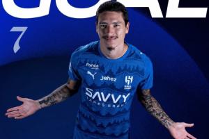 努涅斯上賽季效力英超利物浦,因為紅軍計劃在夏窗豪購新前鋒(?;倏?伊薩克),努涅斯自然也就沒有了位置,被早早出售到沙特,轉會費5300萬歐+浮動。努涅斯加盟新月后效率不錯,盡管受到傷病影響,各項賽事9場仍有5球2助的貢獻。