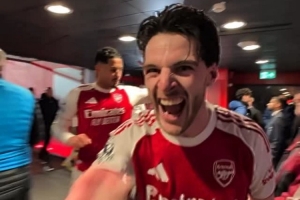 阿森納官方更新社媒動態(tài),曬出賽后球員通道的視頻,槍手球員們在回到更衣室的路上慶祝勝利。