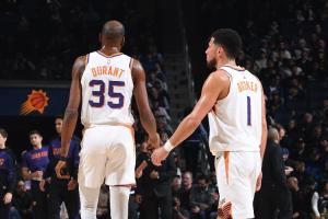 當(dāng)被問及明日背靠背與火箭交手,但杜蘭特因為個人原因(家中有事)確定缺陣,布克說道: “我希望他的家人一切安好,家庭是第一位的,但說實話,我很期待能與他同場競技?!?/p>