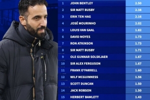 體育資訊11月25日訊 《轉(zhuǎn)會(huì)市場(chǎng)》統(tǒng)計(jì)了阿莫林執(zhí)教第一年在老特拉福德的場(chǎng)均拿分情況,1.43分僅能位列隊(duì)史第16位。