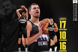 此役,約基奇出戰(zhàn)33分43秒,9中5,其中三分4中3,罰球5中4,得到17分10籃板16助攻2搶斷。