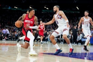 體育資訊11月25日訊 火箭114-92太陽(yáng),賽后,火箭球員小賈巴里·史密斯接受媒體采訪(fǎng)。