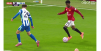 體育資訊10月26日訊 英超第9輪,曼聯(lián)主場(chǎng)迎戰(zhàn)布萊頓,比賽第16分鐘,阿瑪?shù)陆麉^(qū)內(nèi)被絆倒,裁判沒(méi)有判罰。