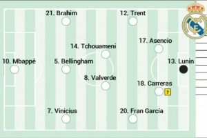 西班牙媒體《阿斯報》預測了皇馬此役的首發(fā)陣容,姆巴佩領銜,維尼修斯、迪亞斯、阿諾德在列。